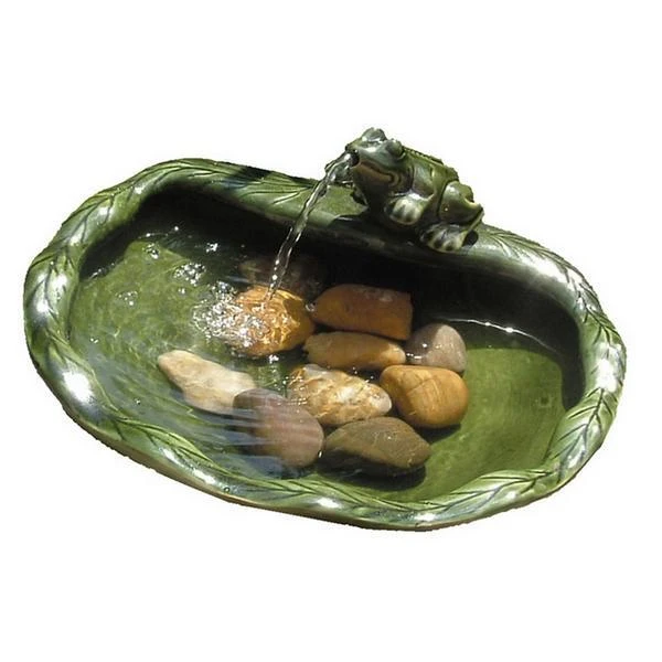 Prachtige fontein met kikker op zonne-energie vervaardigd uit keramiek.