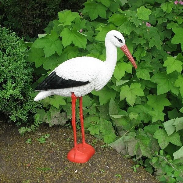 Een levensechte ooievaar op ware grootte voor in de tuin. Deze ooievaar kan een leuke tuindecoratie aan de vijver of de aankondiging van een blije gebeurtenis zijn: plaats de ooieveaar in de voortuin bij de geboorte van een baby en verwelkom zo “de ooievaar”.